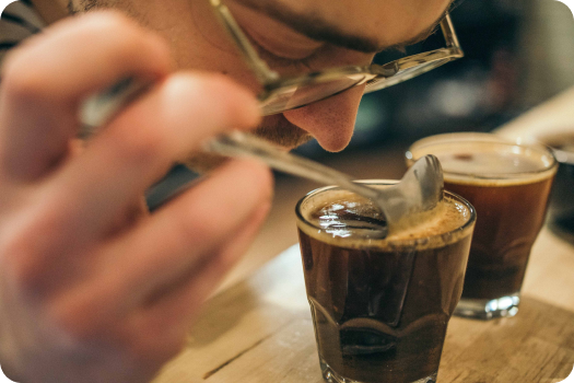 Кожна партія обсмаженого зерна проходить капінг та тест на відповідність показникам вологості, щільності, екстрактивності та кольоропроби.